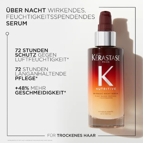 Das Kérastase Nutritive 8H Magic Night Serum ist eine reichhaltige, pflegende Nachtpflege, die das Haar während des Schlafs intensiv regeneriert. Inspiriert von der Wirkung einer Nachtcreme für die Haut, nährt dieses Serum das Haar 8 Stunden lang, um am Morgen geschmeidiges, glänzendes und leicht kämmbares Haar zu enthüllen.