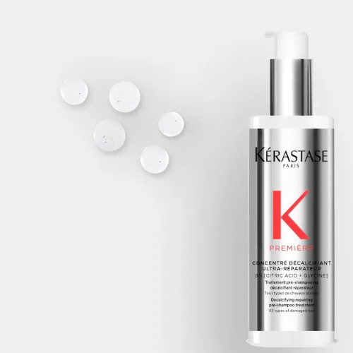 Das Kérastase Première Concentré Décalcifiant Ultra-Réparateur ist ein hochwirksames Leave-in-Serum, das geschädigtes Haar von innen stärkt, repariert und vor äußeren Einflüssen schützt. Die innovative Formel mit Zitronensäure und Glycin hilft, Kalziumablagerungen zu neutralisieren, die Haarfaser zu regenerieren und die Schuppenschicht zu versiegeln – für spürbar geschmeidiges, kräftiges und glänzendes Haar.