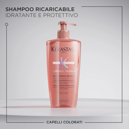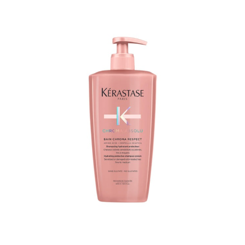 Das Kérastase Bain Chroma Respect in der praktischen 500-ml-Pumpflasche ist ein sanft reinigendes, sulfatfreies Shampoo für coloriertes oder empfindliches Haar. Es stärkt die Haarstruktur, schützt die Farbintensität und verleiht dem Haar Geschmeidigkeit und Glanz. Mit Aminosäure und Centella Asiatica für gepflegtes, gesund aussehendes Haar.
