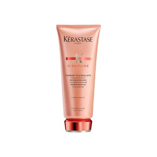 Der Kérastase Discipline Fondant Fluidealiste ist ein leicht pflegender Conditioner, der widerspenstiges Haar gezielt glättet und ihm neue Beweglichkeit verleiht. Die innovative Formel mit dem MORPHO-KÉRATINE™️-Komplex umhüllt die Haarfaser, verbessert ihre Struktur und sorgt für ein geschmeidiges, kontrolliertes Finish.
