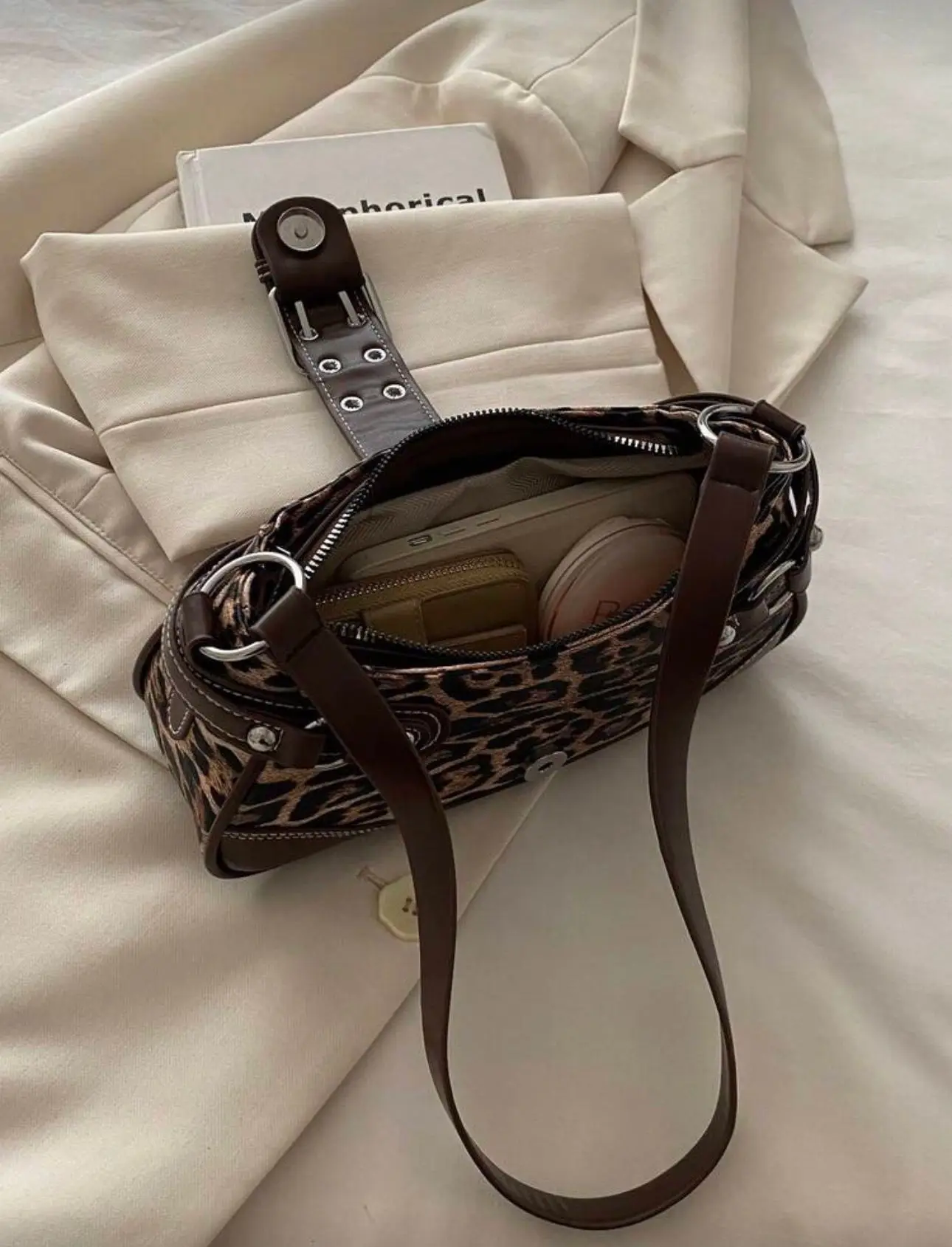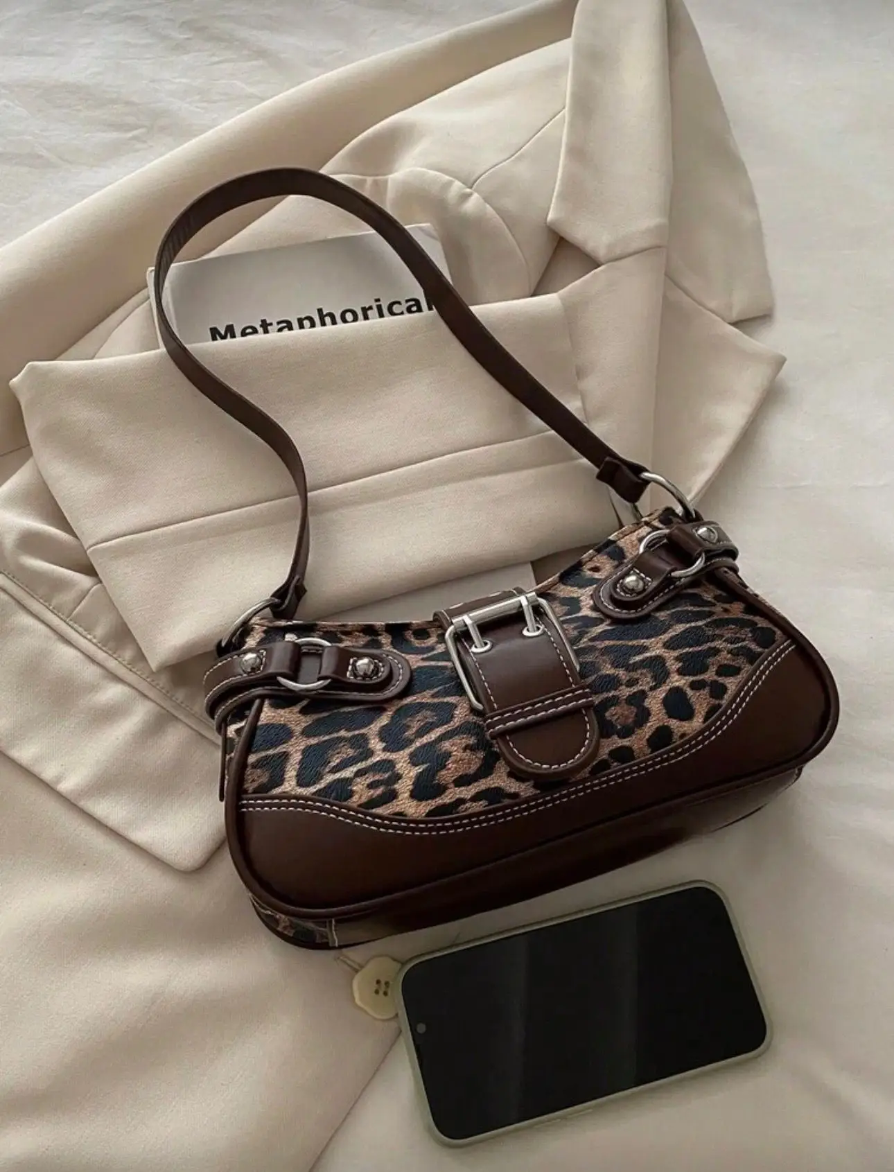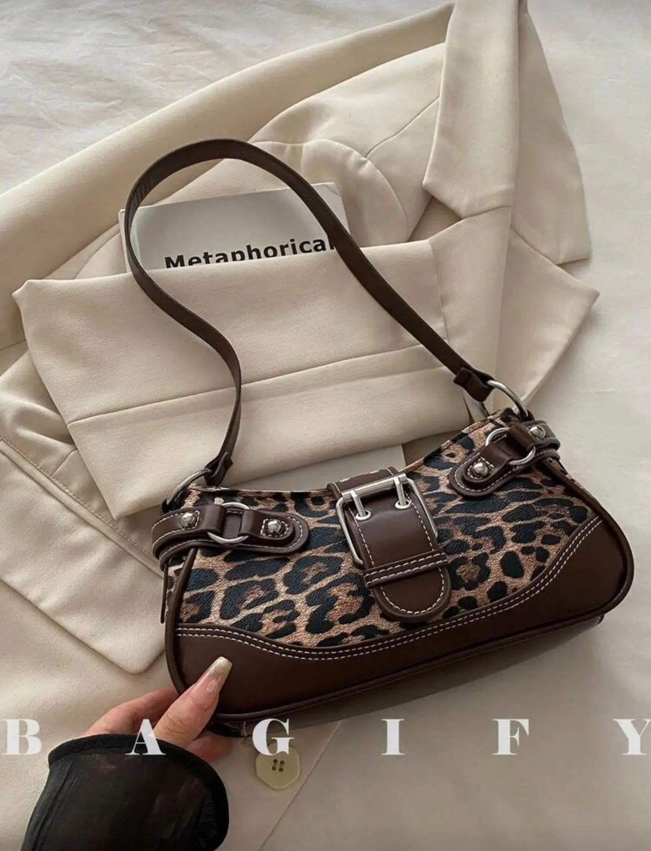 Be the first to review “Leopard Schultertasche mit Leder-Details & Schnalle”
