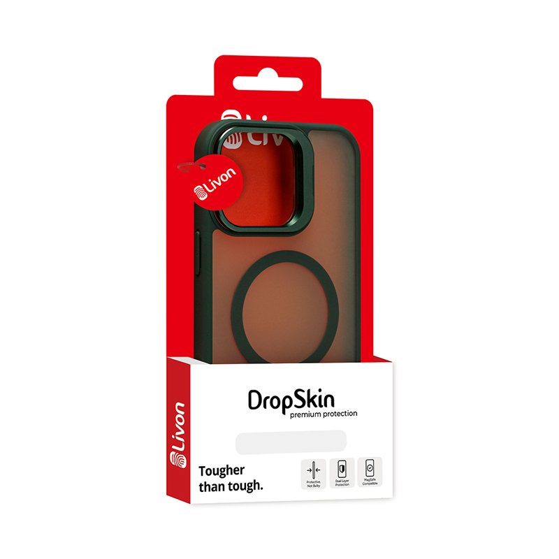 Livon iPhone 16 Pro Max DropSkin highlights your iPhone’s iconic design while offering seamless convenience. Stay true to minimalism with everyday protection against drops and scratches. Now enhanced with cutting-edge wireless charging technology for a smoother MagSafe experience. Plus, the flush-fitting kickstand adds next-level versatility. – Green