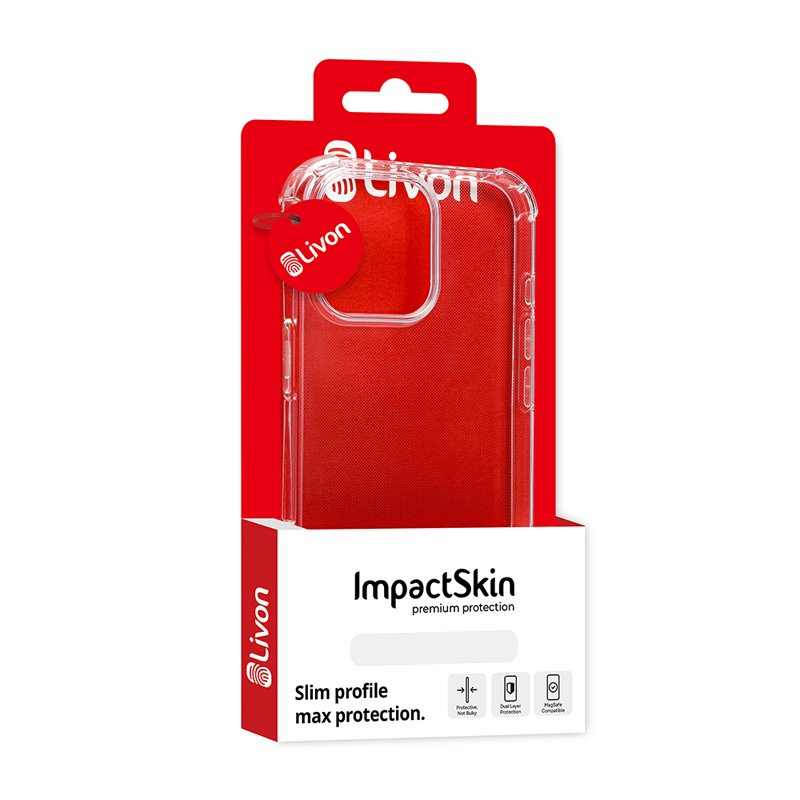 Livon iPhone 16 Pro Max Livon Impactskin case made to provide extra protection for your device. The corners are made of flexible silicone material to absorb fall damage.