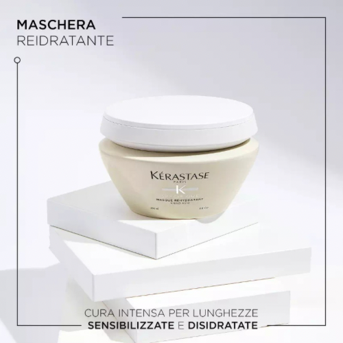 Die Kérastase Spécifique Masque Réhydratant ist eine intensiv feuchtigkeitsspendende Maske, die speziell entwickelt wurde, um die Längen und Spitzen nach einer tiefenreinigenden Kopfhautpflege mit Feuchtigkeit zu versorgen. Sie regeneriert das Haar, verleiht Geschmeidigkeit und sorgt für ein seidiges, gesundes Finish.