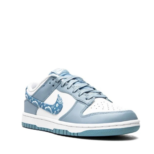 Der Nike Dunk Low „Paisley Light Blue“ kombiniert den klassischen Dunk Look mit einem besonderen Highlight: dem hellblauen Paisley Swoosh. Das weiße Glattleder bildet eine saubere Basis, während die pastellblauen Overlays und das Paisley Muster dem Schuh einen einzigartigen, frischen und stylischen Touch verleihen.