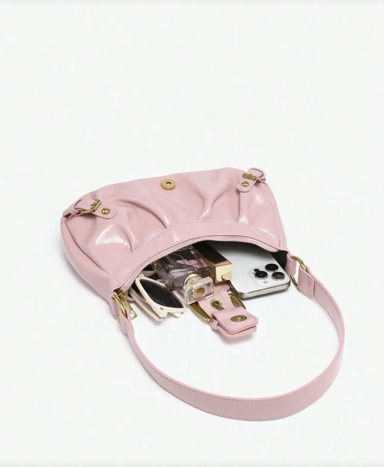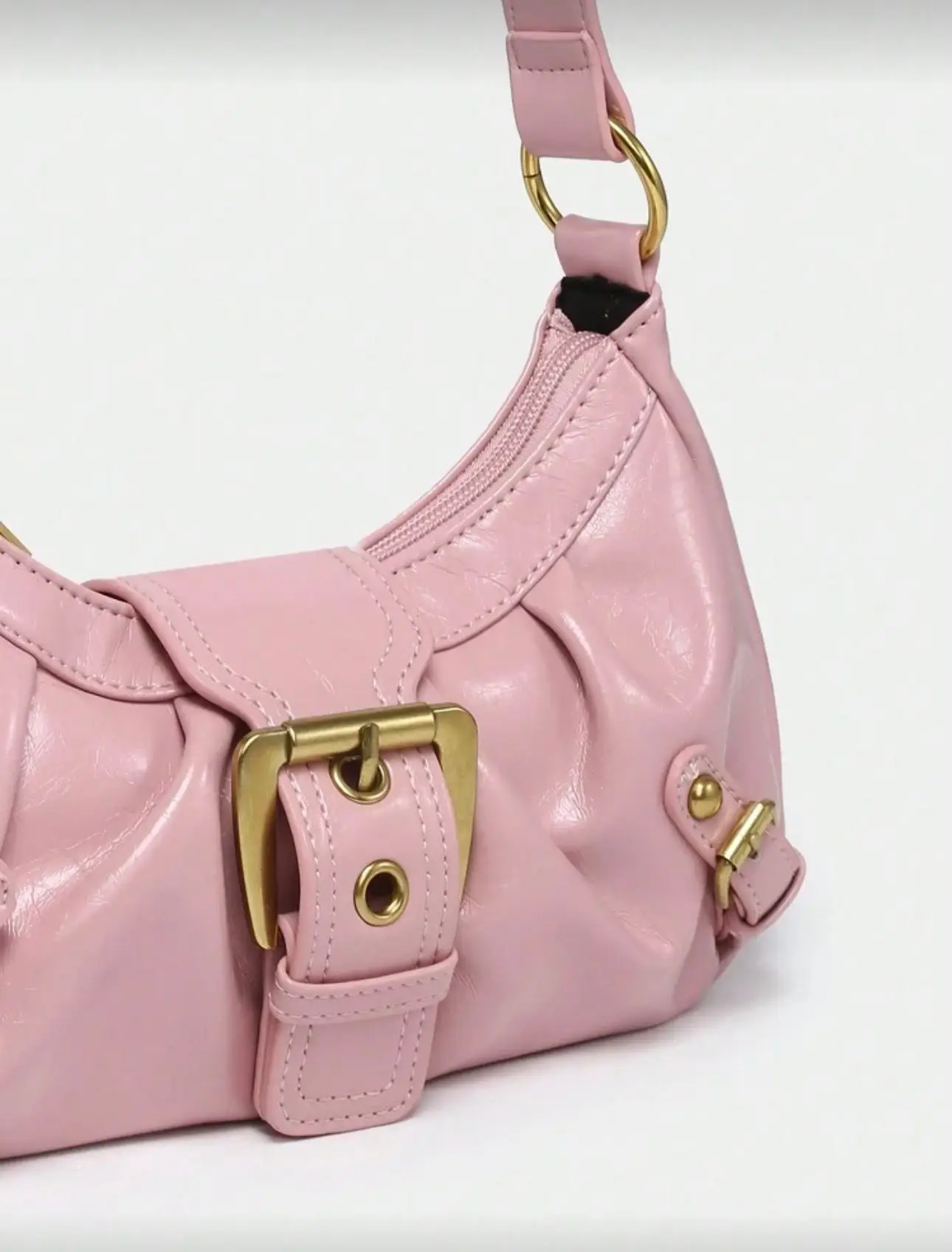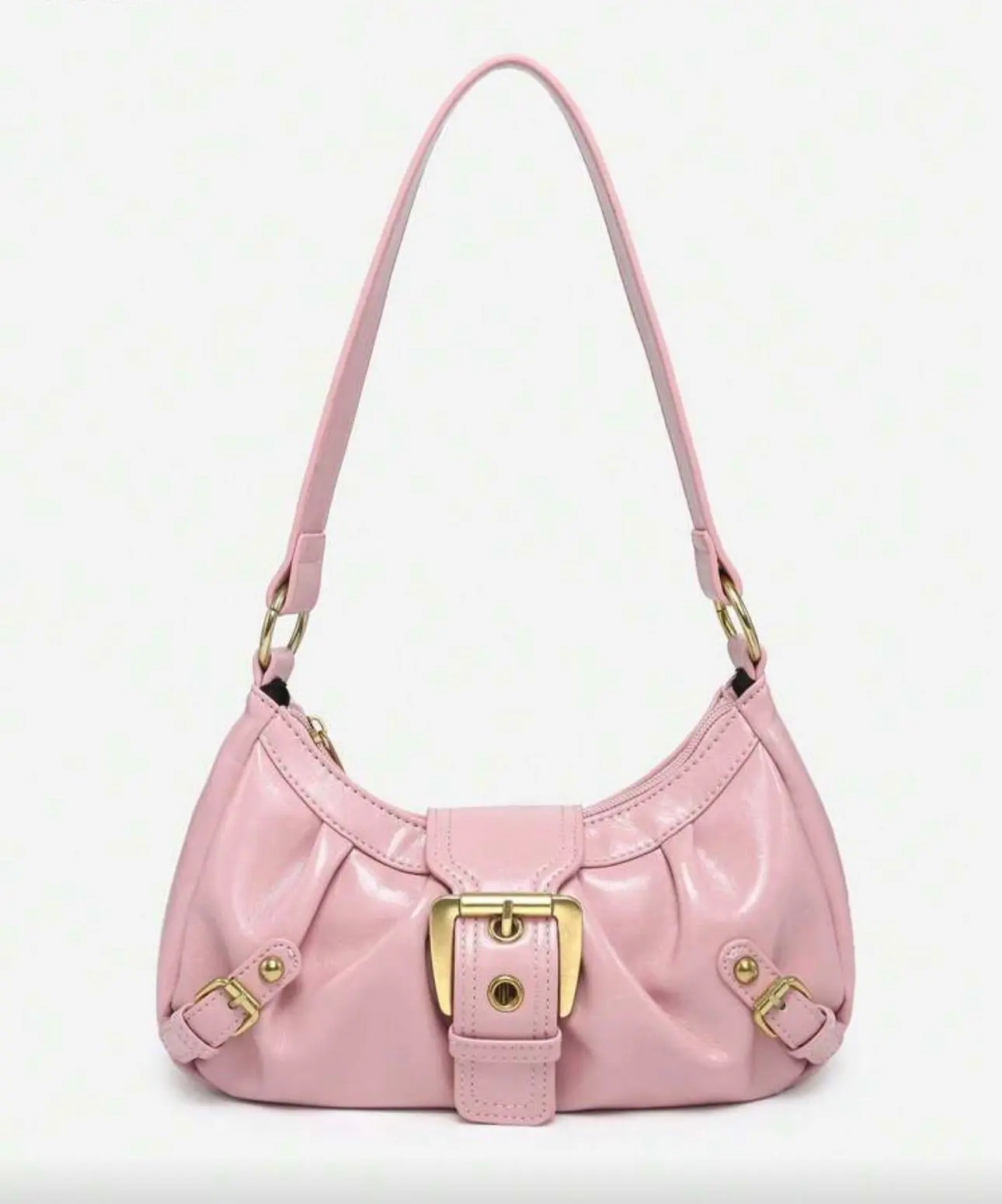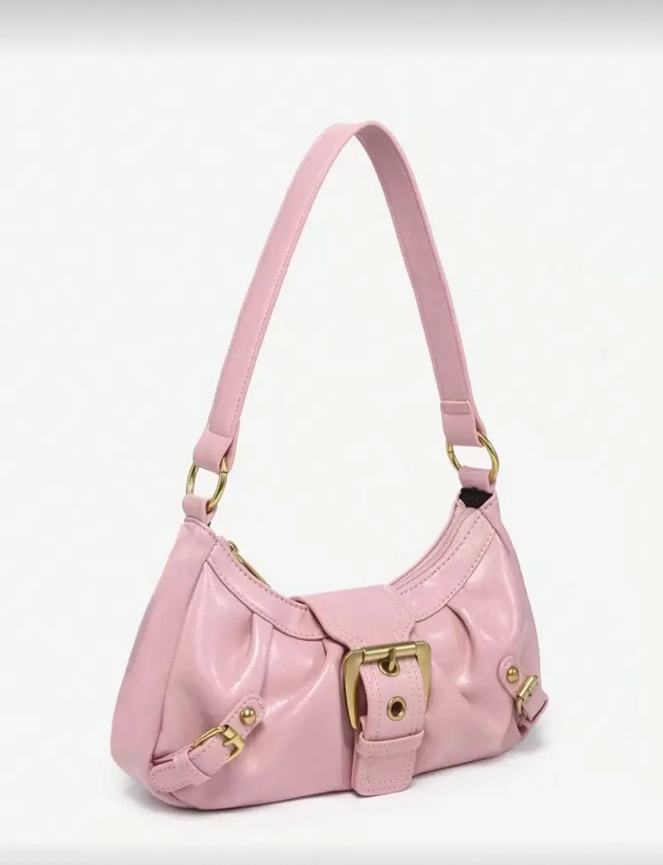 Be the first to review “Rosa Schultertasche im Soft-Look mit goldener Schnalle”