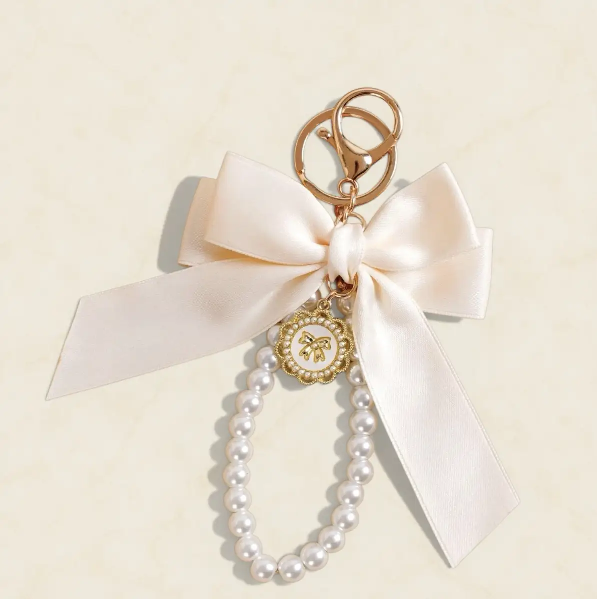 Schlüsselanhänger Schleife mit Perlen Champagner