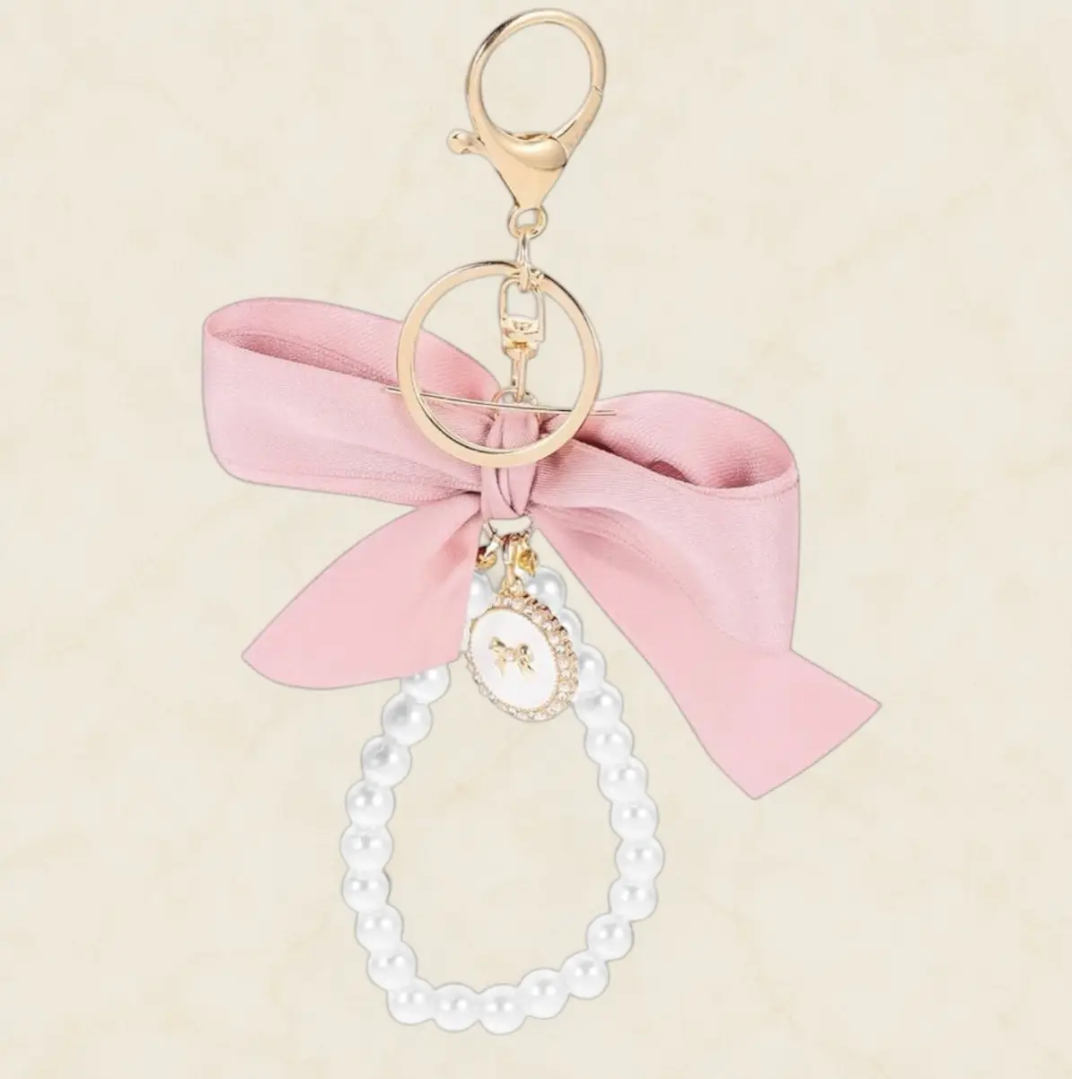 Zart und feminin: Dieser Schlüsselanhänger mit großer rosa Schleife und eleganten Perlen sorgt für einen romantischen Look. Ideal als Accessoire für Schlüssel, Handtaschen oder als Geschenk für besondere Anlässe.