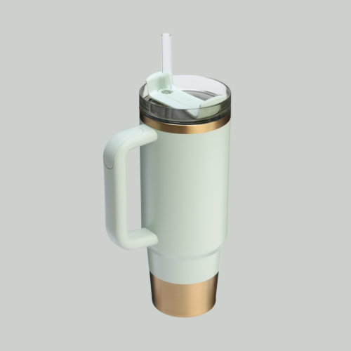 Mit goldfarbenem Boden und mattem Mint-Oberteil ist dieser Stanley Cup ein echtes Highlight auf jedem Schreibtisch oder in deiner Tasche.